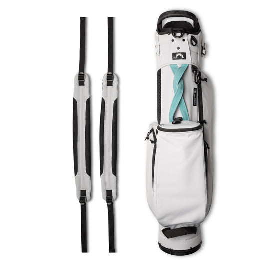 Designed with a versatile single or double shoulder strap configuration the Trouper 3.0 is your ideal companion on the course. A large insulated front cooler pocket has enough space to keep four 16oz cans cold. The two newly improved fleece-lined valuable compartments and seven-pocket design secures valuables while allowing for straightforward access. A large five-way divider allows for simple organization and an easy pull for all 14 clubs even with oversized grips. Simply put the Trouper 3.0 delivers an effortless and reliable experience for any player round after round. Featuring All-New Straps and a bolstered stand mechanism.