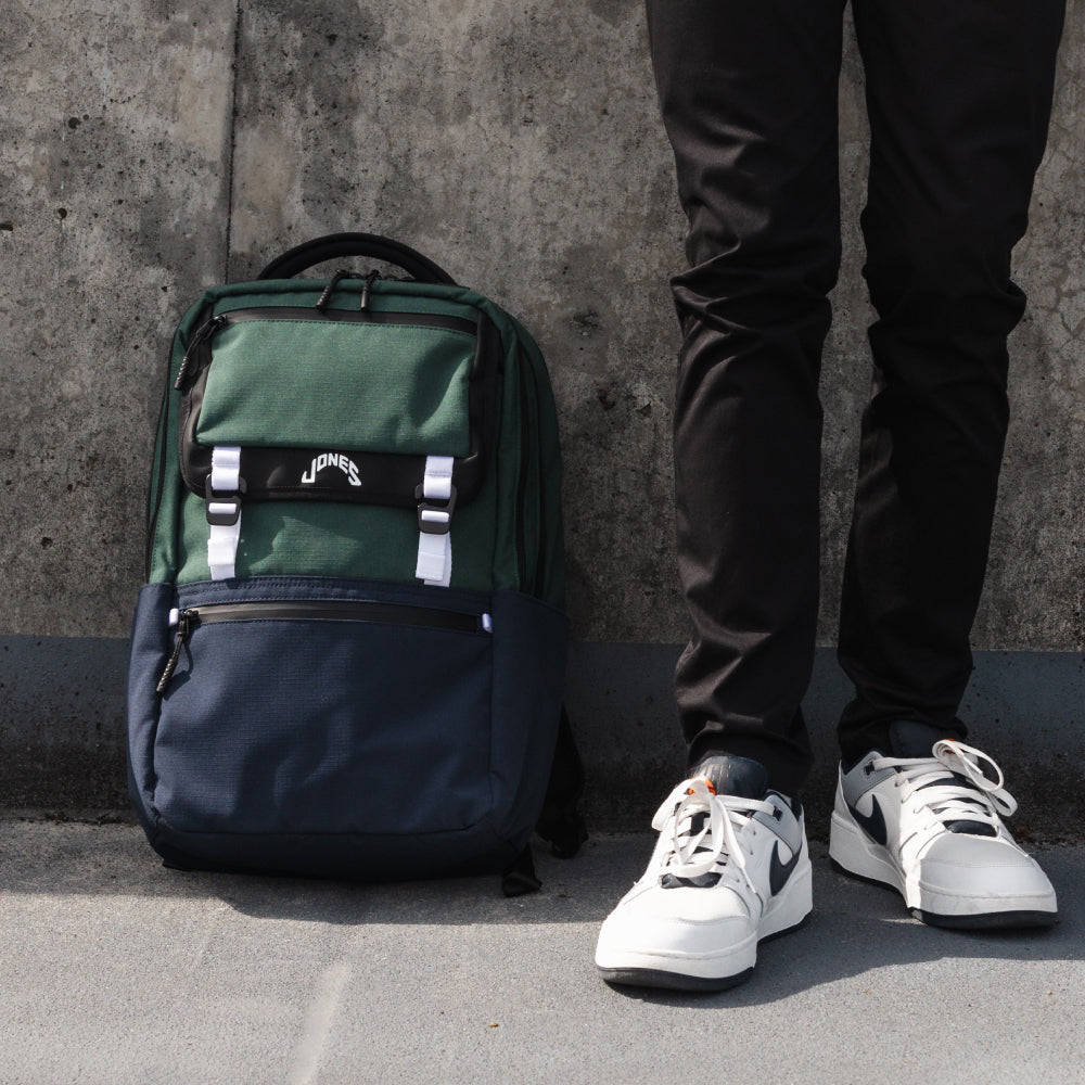 The Jones A2 Backpack R is the latest A-series for traveling professionals. With ample space and separation this pack will keep you organized for life on the go. The padded shoulder straps and cushioned back support ensures a comfortable carry when loaded with your daily necessities. The water bottle sleeves are made out of a soft-hand feel vegan P.U. material giving way to a smooth yet durable feature. The A2 is the first Jones product to offer a hidden embroidery location under the front buckled flap allowing for a sleek look while still carrying the meaning of your design.