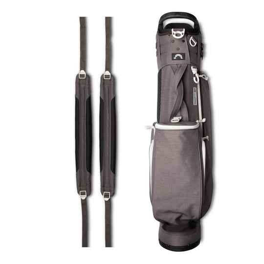 Designed with a versatile single or double shoulder strap configuration the Trouper 3.0 is your ideal companion on the course. A large insulated front cooler pocket has enough space to keep four 16oz cans cold. The two newly improved fleece-lined valuable compartments and seven-pocket design secures valuables while allowing for straightforward access. A large five-way divider allows for simple organization and an easy pull for all 14 clubs even with oversized grips. Simply put the Trouper 3.0 delivers an effortless and reliable experience for any player round after round. Featuring All-New Straps and a bolstered stand mechanism.