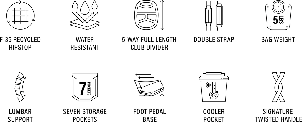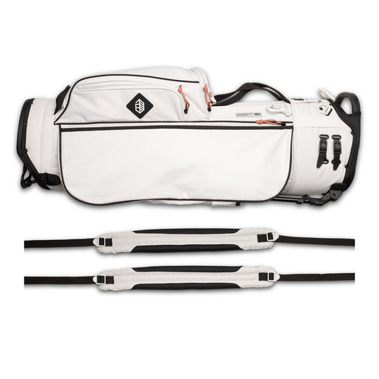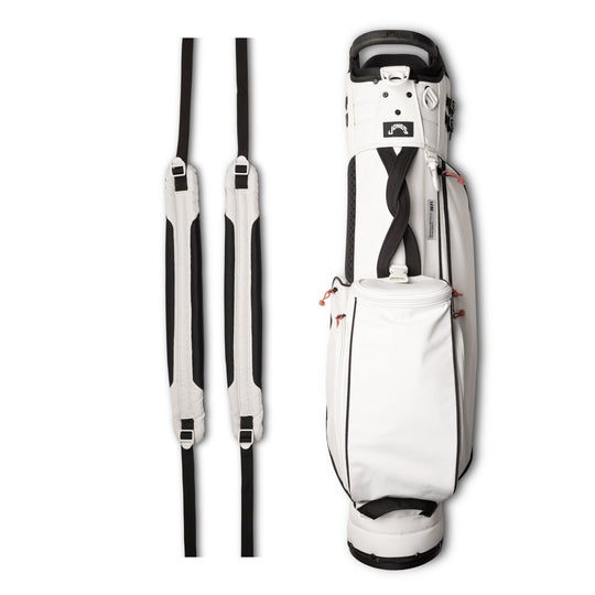 Designed with a versatile single or double shoulder strap configuration the Trouper 3.0 is your ideal companion on the course. A large insulated front cooler pocket has enough space to keep four 16oz cans cold. The two newly improved fleece-lined valuable compartments and seven-pocket design secures valuables while allowing for straightforward access. A large five-way divider allows for simple organization and an easy pull for all 14 clubs even with oversized grips. Simply put the Trouper 3.0 delivers an effortless and reliable experience for any player round after round. Featuring All-New Straps and a bolstered stand mechanism.